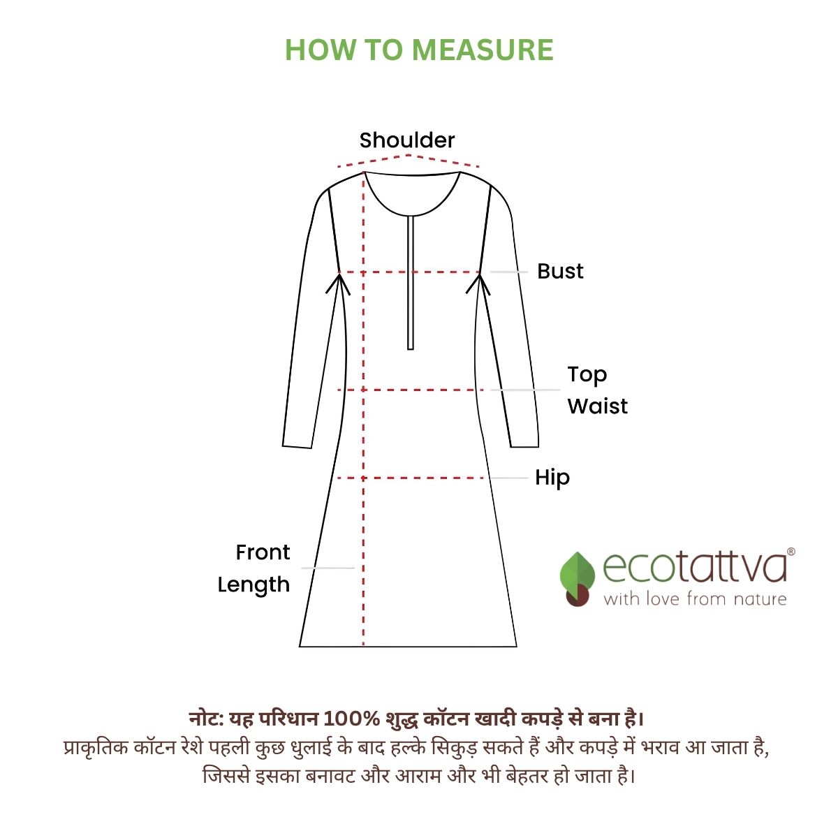 - Ecotattva’s Ladies Kurtas are made of handspun and handwoven premium muslin Khadi.